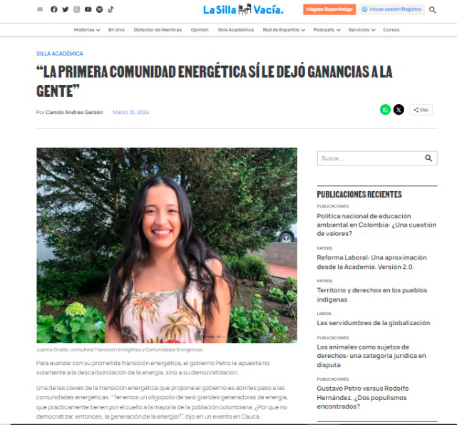 Juanita Giraldo: En diciembre del 2023 salió un nuevo decreto de comunidades energéticas en el que definen varias cosas importantes. La primera es que dice qué se va a considerar como una comunidad energética.